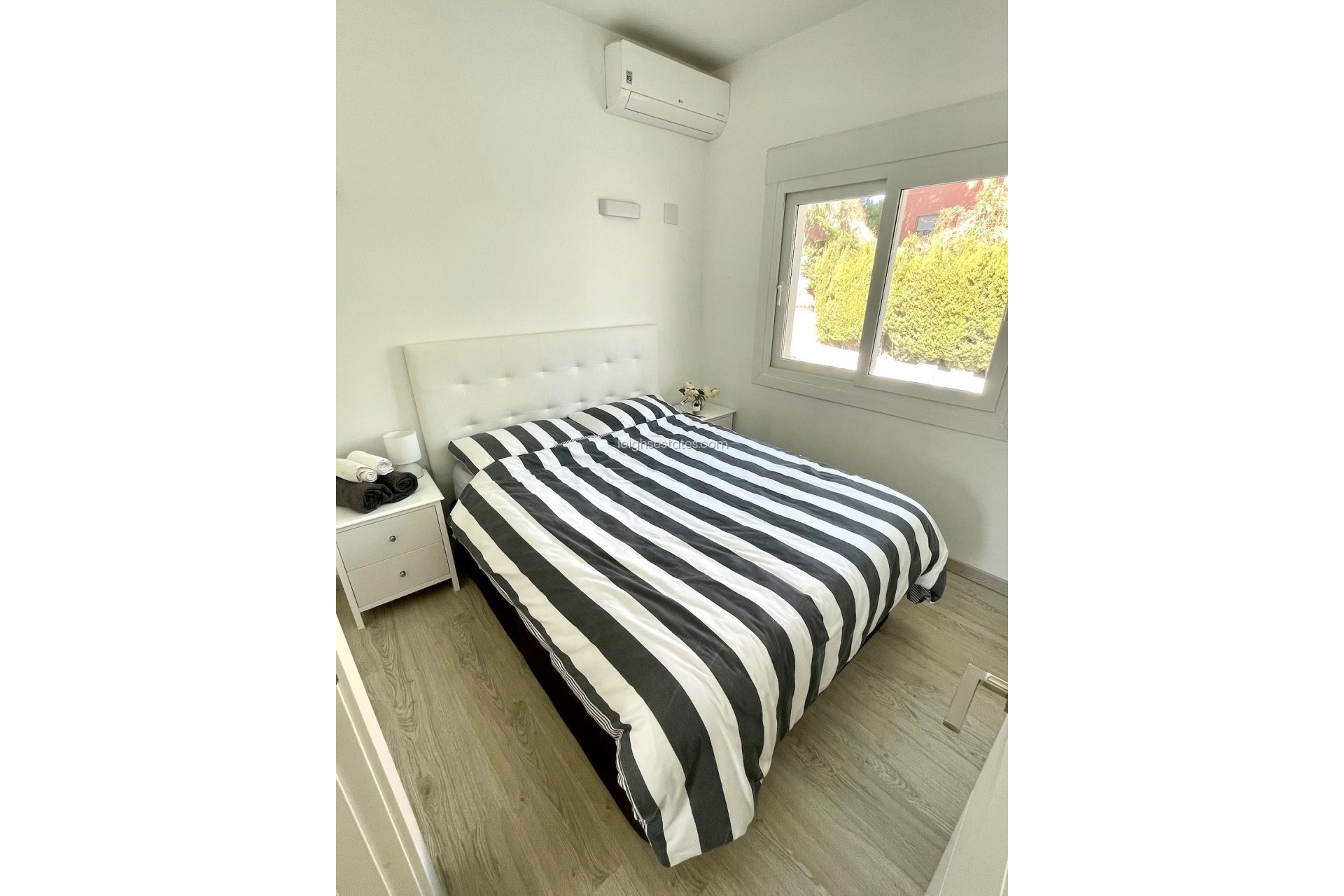Otros aspectos destacados son la calefacción central de gasóleo, aire acondicionado en toda la vivienda, amplio espacio de almacenamiento, aparcamiento fuera de la vía pública y una gran piscina privada con tumbonas. La propiedad se vende completamente amueblada y equipada, lista para disfrutar de inmediato.