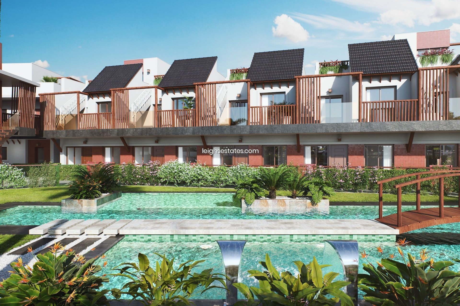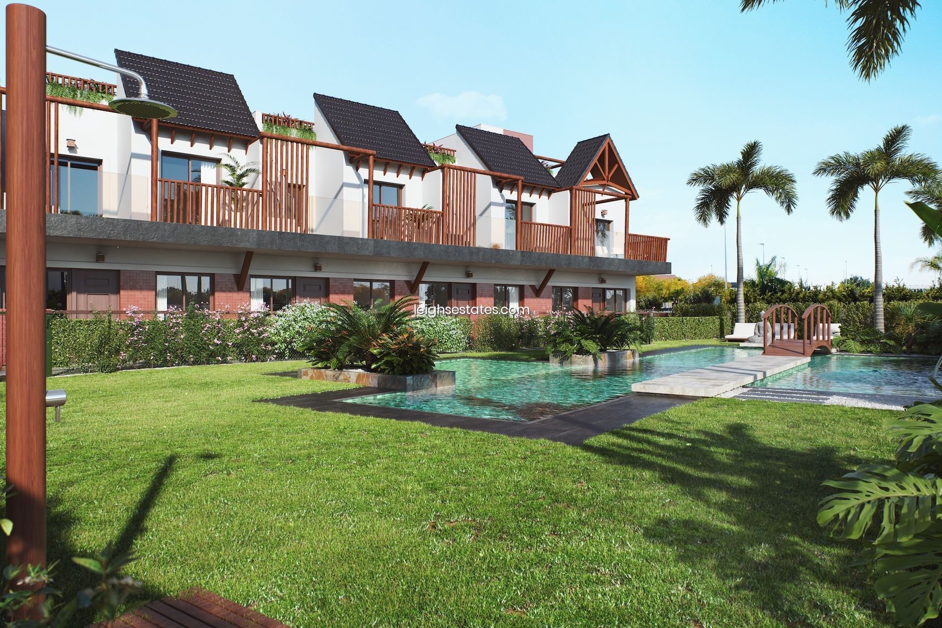 They come with an option of either ground or first floor living, comprising 2 or 3 bedrooms and 2/3 bathrooms, they have large private exterior areas and come complete with a parking space. There is also a beautiful communal pool surrounded by green areas that will make you think that you are in Thailand! Located just 300 meters from the center of the pretty town of Pilar de La Horadada in the heart of the Costa Blanca and less than 3km to the beach with all of the amenities you will need close by.